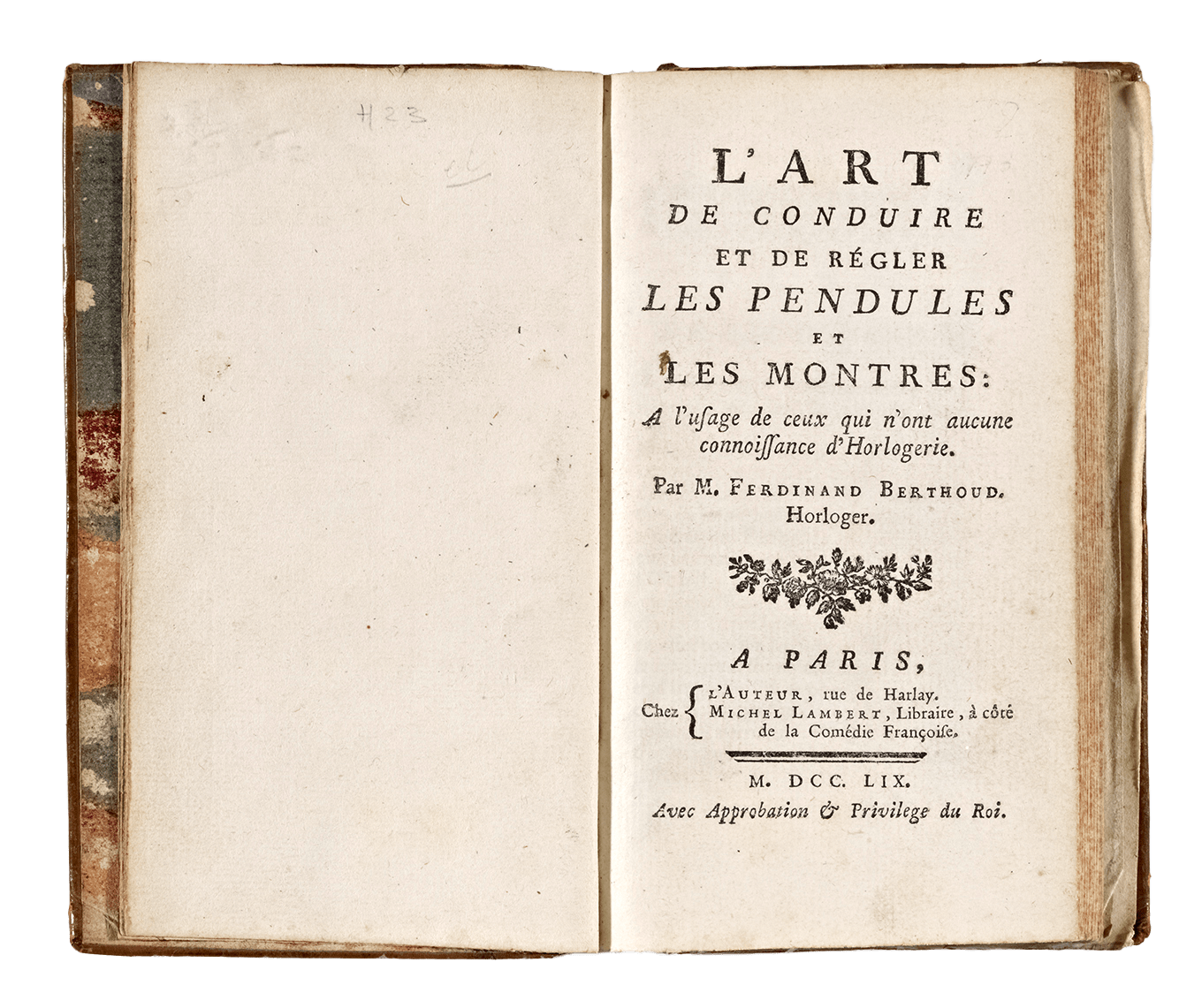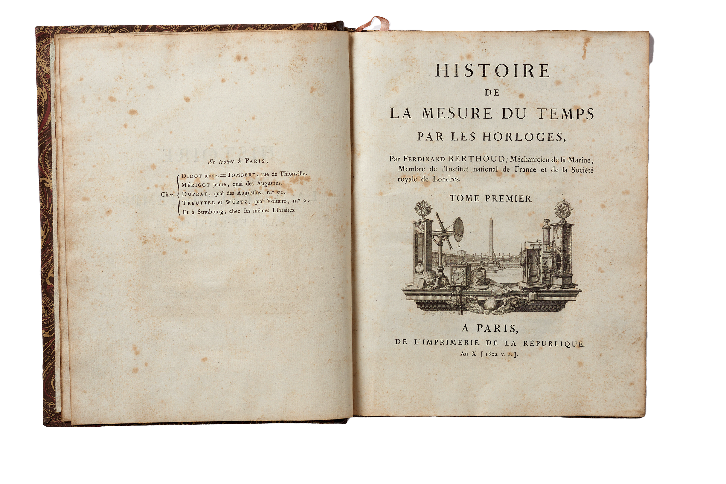 "Histoire de la mesure du temps par les horloges" ( The history of time measurement with clocks) in which Ferdinand Berthoud demonstrates his exceptional knowledge of horological mechanics.