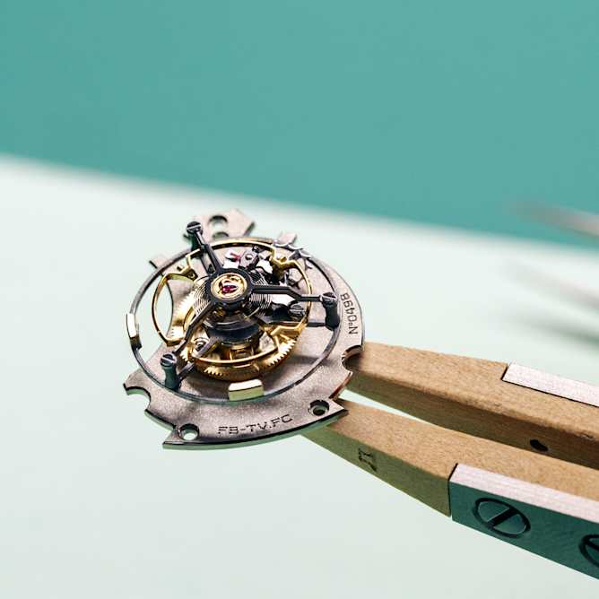 The primary intention of the new Calibre FB-TV.FC has thus been achieved: to render almost its entire mechanism visible on the dial side. Highly anticipated by collectors, this approach also provides a chance to showcase the Chronométrie's decorative expertise to the full. The movement's 1,240 components – including 777 elements for the chain alone – require nearly 300 hours of manual finishing, in accordance with the most stringent quality criteria.