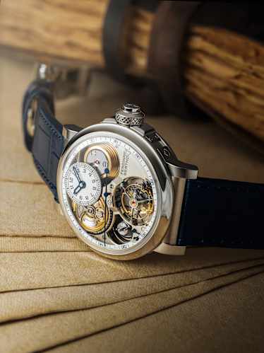 Chronomètre FB 2TV.1 is housed in an 18-carat white gold case enhanced by a hand-sanded natural nickel silver movement, as a nod to Chronomètre FB 1.1 that won the “Aiguille d'Or” Grand Prix at the 2016 GPHG awards.