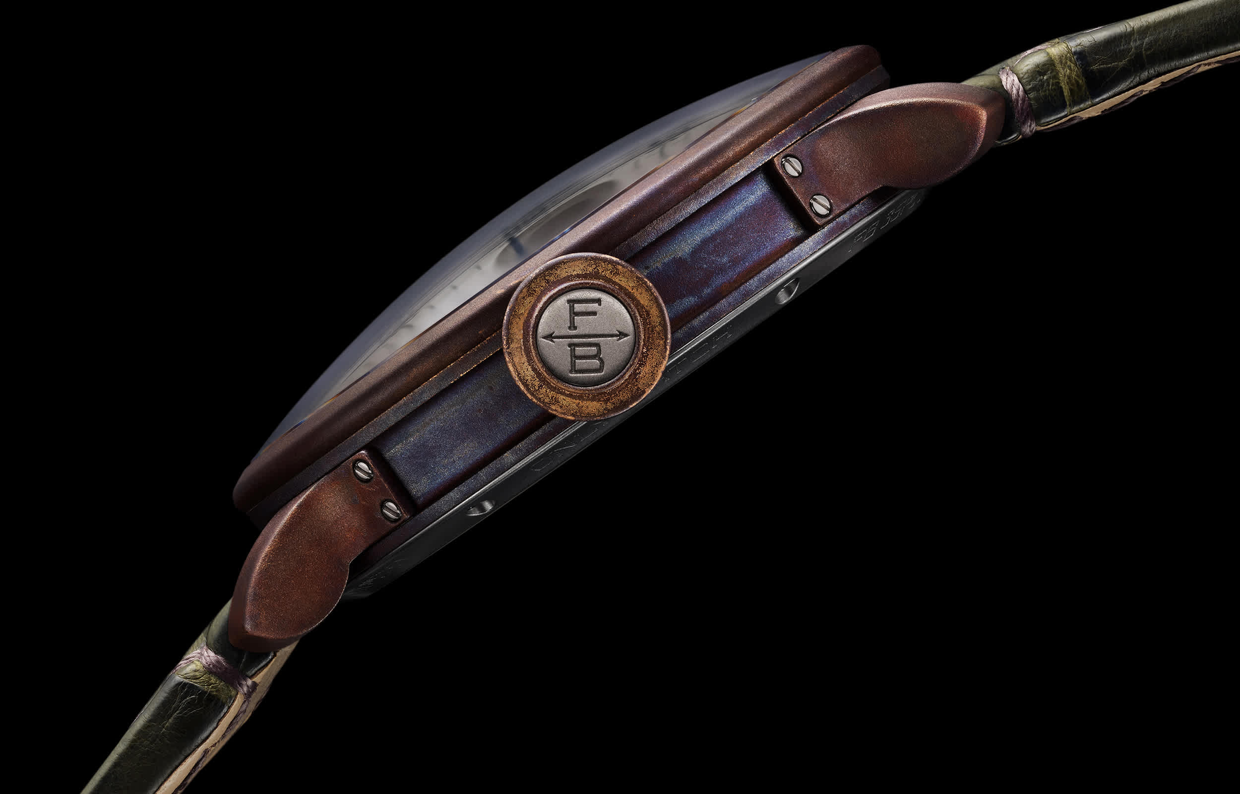 Several months of preparation and testing were necessary to achieve the patinated bronze case of the Chronomètre FB 3 Only Watch. The colour and nuances are unprecedented and evoke to the discerning gaze the patina that naturally develops on the copper alloys of the precision and navigation instruments supplied by Ferdinand Berthoud during the 18th century.