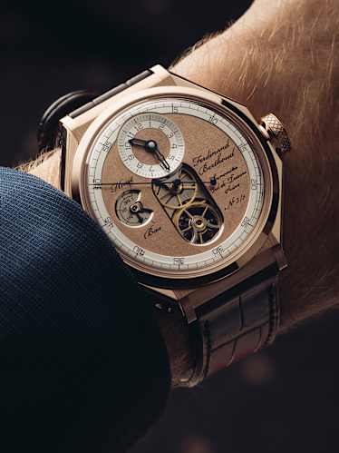 The FB 1 collection of Chronométrie Ferdinand Berthoud pays tribute to this work and to the movements that pioneered chronometric precision. Its case is inspired by Ferdinand Berthoud's marine chronometers, in particular their gimbal suspension that served to maintain on-board chronometers in a permanently horizontal position.
