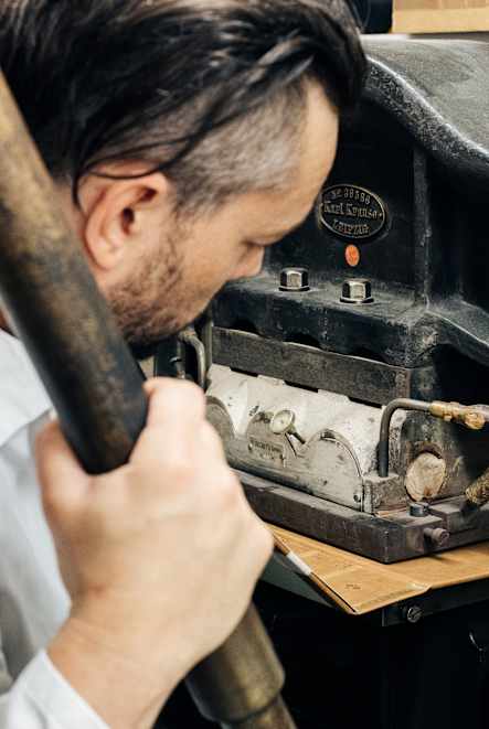 - A l’exception de la lentille, la loupe est fabriquée entièrement en interne par nos artisans. Le manche en bois est réalisé par tournage, et les bagues à la fraise, qui permet de façonner les cannelures. Une fois les gravures à la main effectuées, tous les éléments sont soigneusement polis.