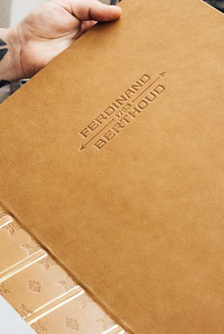 L’écrin de la montre NM3 s’inspire des traités d’horlogerie écrits et publiés par Ferdinand Berthoud au 18ème siècle. Sa réalisation s’inscrit dans la continuité de l’oeuvre de l’Horloger-Mécanicien du Roi et de la Marine. L’écrin se compose de deux ouvrages de grandes dimensions, réalisés en bois gainé de cuir de veau, rehausséde lettrages et de décors gaufrés et dorés à chaud.